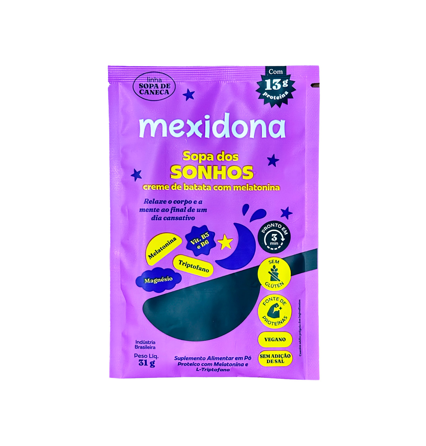 A Sopa dos Sonhos tem um sabor delicado de creme de batata, com um toque leve e natural dos ingredientes funcionais. Sua textura cremosa e reconfortante faz dela uma excelente opção para incluir no seu ritual noturno de bem-estar.